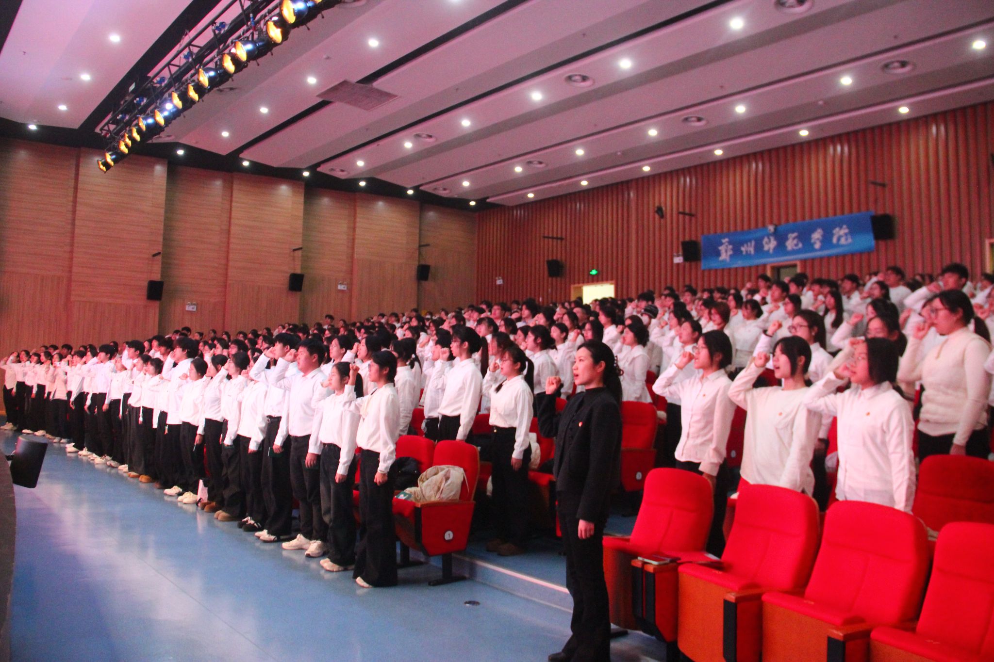 为强化新团员的身份认同与责任意识,仪式特别设置奏唱团歌环节。悠扬的团歌声中,蕴含着对全体新团员的殷切号召:要以团员身份为荣,以身作则、争当表率,积极响应国家号召,在各类实践活动中发挥先锋模范作用;要秉持吃苦耐劳的精神,将个人理想融入国家发展大局,以小我之力成就大我之荣,用青春热血为国家建设事业添砖加瓦。