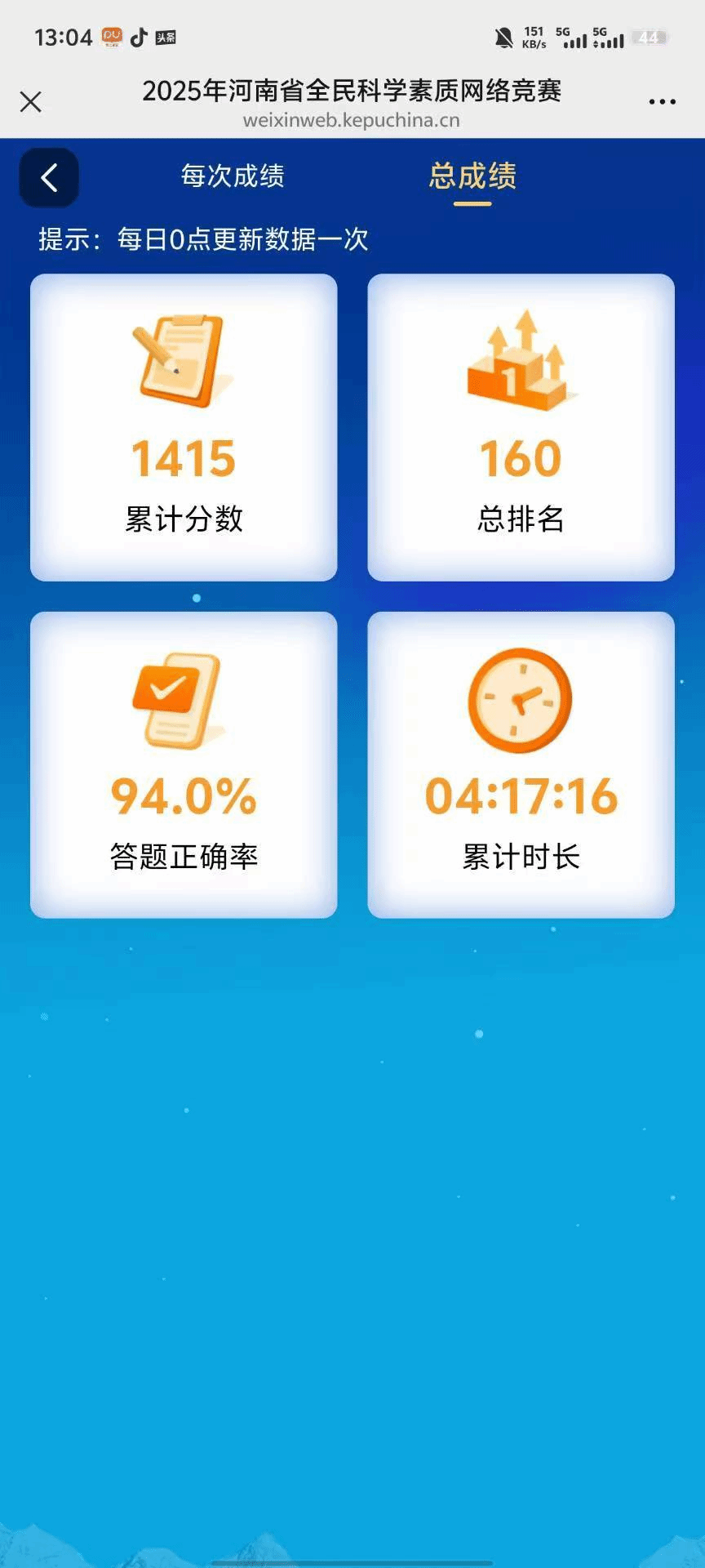 此次活动以线上形式进行,开设专属网络平台供公众参与,同步设置学习区方便参赛者提前研习科学知识,竞赛题型涵盖科学观念与方法、生命与健康、科技与社会等多个领域,参赛者每日拥有基础答题机会,通过分享等互动行为可额外增加答题次数,系统依据答题正确率、用时等综合评定成绩并实时排名。活动期间学生们积极思考、灵活运用所学知识,答题人次与注册人数均达较高规模,最终根据个人累计竞赛分及答题平均用时等评选出各级别优秀个人奖项,部分表现突出者获荣誉证书及实物奖励,同时结合答题表现授予特色称号以示鼓励。最后此次活动圆满结束。